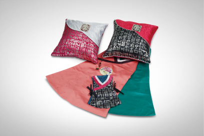 (지역) 한글과 한복을 모티브로 한 쿠션과 앞치마